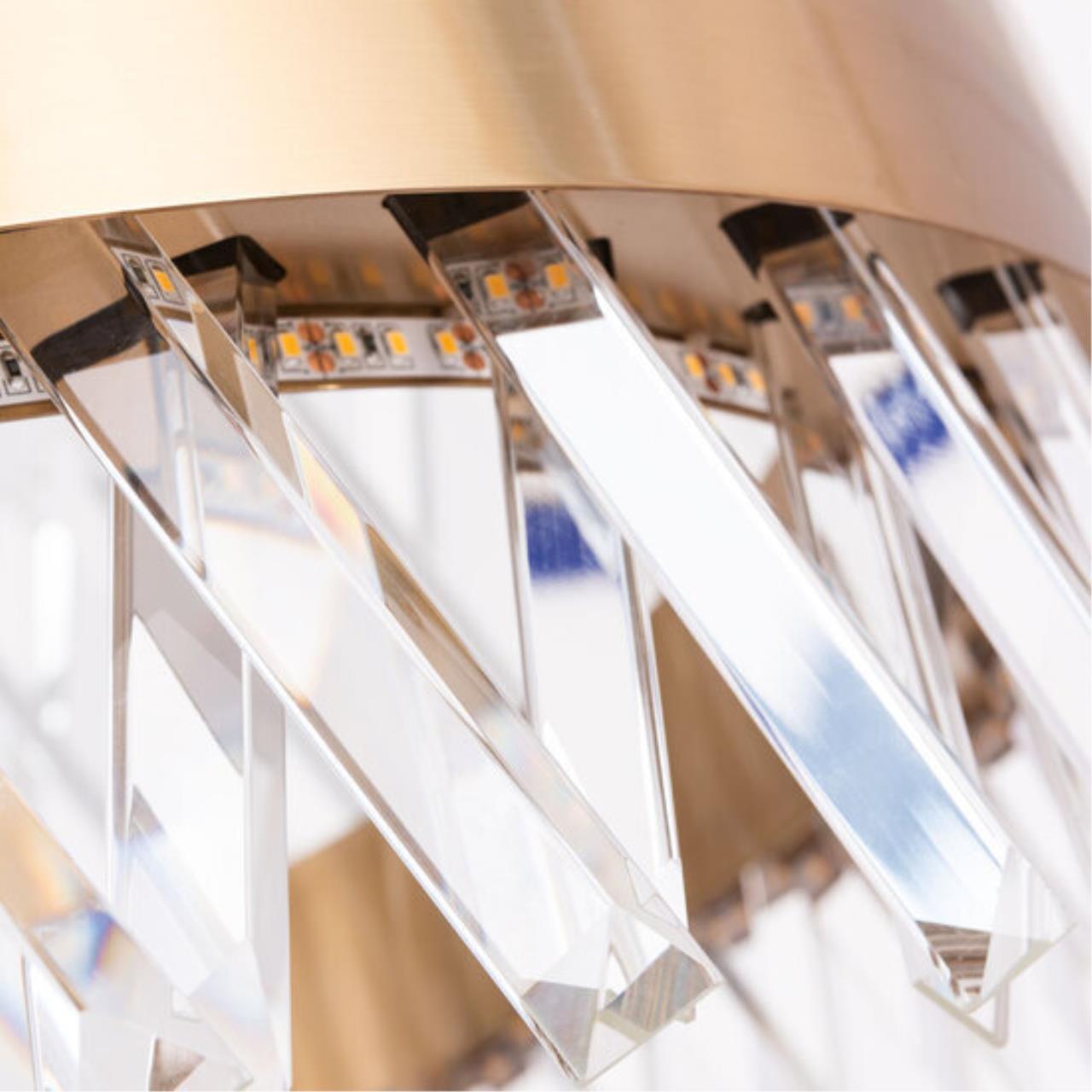 Люстра Divinare 1685/01 SP-1 серии CORONA. Освежит ваш интерьер. Высота 30 cm. Диаметр 60 cm Параметры пылевлагозащиты IP — 20. Плафон хрустальный прозрачный, а материал/цвет арматуры металл/золотистый. Имеются встроенные светодиодные лампы, рассчитанные на весь срок службы светильника. Площадь освещения охватывает 7 m². Идеально подходит для гостиной. Страна происхождения бренда — ИТАЛИЯ. Вес с упаковкой 9 kg