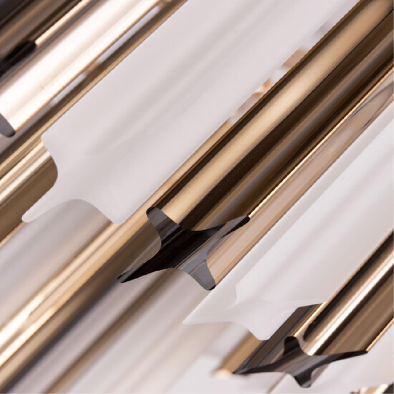 Роскошные люстры FRIZZANTE призваны украшать фешенебельные интерьеры. Свободно свисающие хрустальные декоративные элементы, расположенные в несколько рядов, образуют объемную конструкцию, которая при движении воздуха в помещении начинает «звучать». Сочетание золотых и матированных декоративных подвесок создаёт мягкий и воздушный образ модели. В коллекции три люстры разных размеров, есть возможность подобрать в помещения разных форматов. Большое бра может быть дополнением в ансамбль с люстрой, а может быть самостоятельным украшением интерьера.