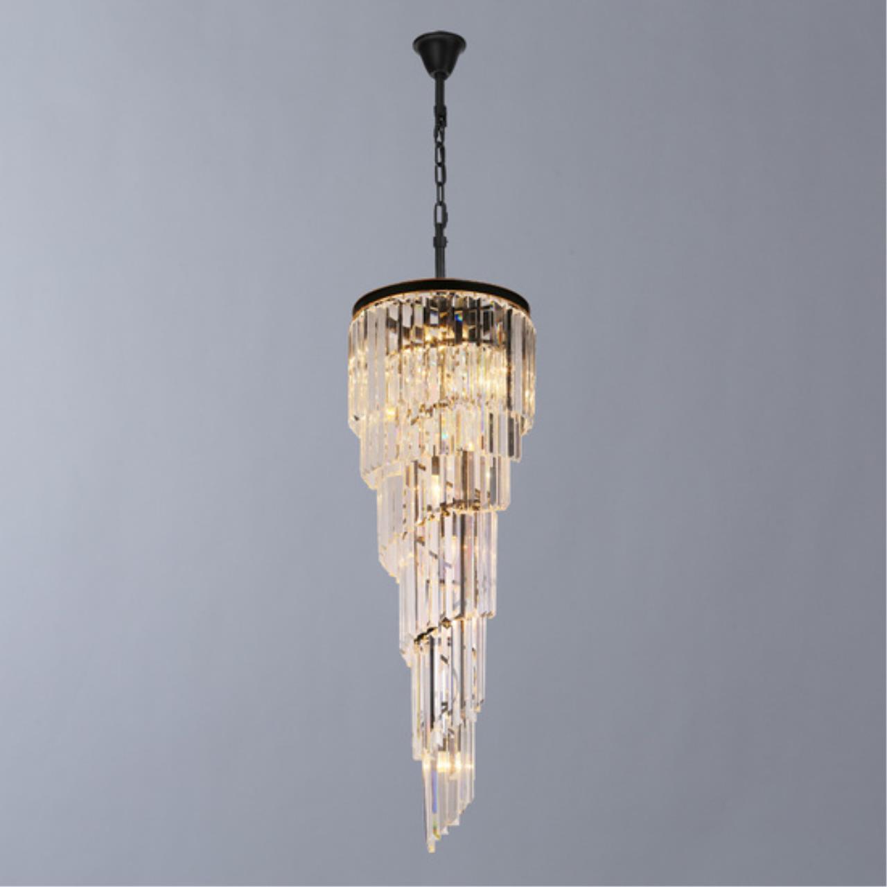 Люстра Divinare 3011/01 SP-11 серии Charlotte в современном стиле. Освежит ваш интерьер. Размеры 0.5x0.5x1.7 m. Параметры пылевлагозащиты IP — 20. Форма конусная. Плафон хрустальный прозрачный, а материал/цвет арматуры металл/черный. Использует 11 ламп с цоколем E14. Идеально подходит для гостиной, для прихожей, для офиса, для спальни. Страна происхождения бренда — Италия. Вес с упаковкой 14 kg