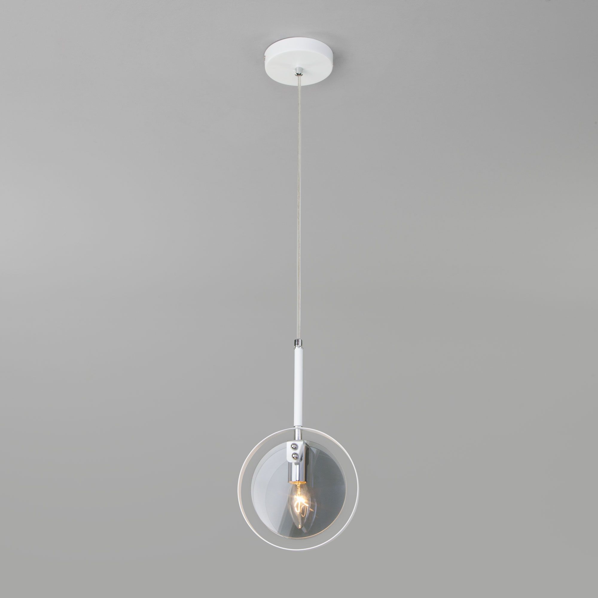 Подвесной светильник 50121/1 белый предназначен для создания дополнительного освещения и акцентной подсветки в современных интерьерах. Светильник со сменной лампой E14 создаст качественное освещение на площади 4 кв.м. и подсветит рабочие зоны на кухне, в гостиной, в офисе и других местах. Светильник со стеклянным плафоном, оснащен системой регулировки высоты подвеса, позволяющей размещать изделие на разных уровнях, уменьшая или увеличивая угол рассеивания светового потока. Данный светильник легко устанавливается на потолке при помощи монтажной планки.