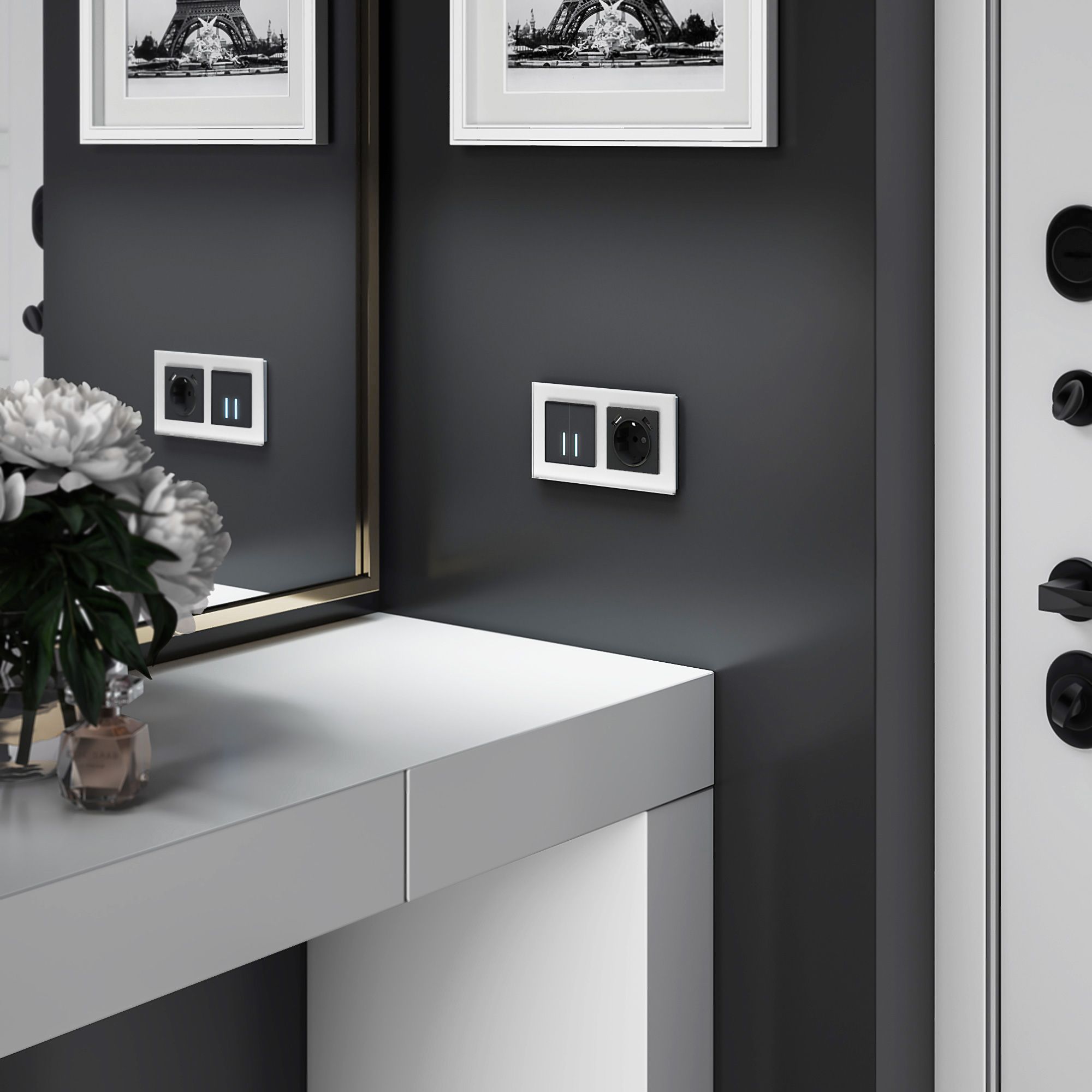 Рамка Favorit выполнена из закаленного стекла толщиной 5 мм. Идеально отшлифованные грани, подчеркнутые прямой фаской, создают необычайную игру света и придают дополнительный объем стеклу.