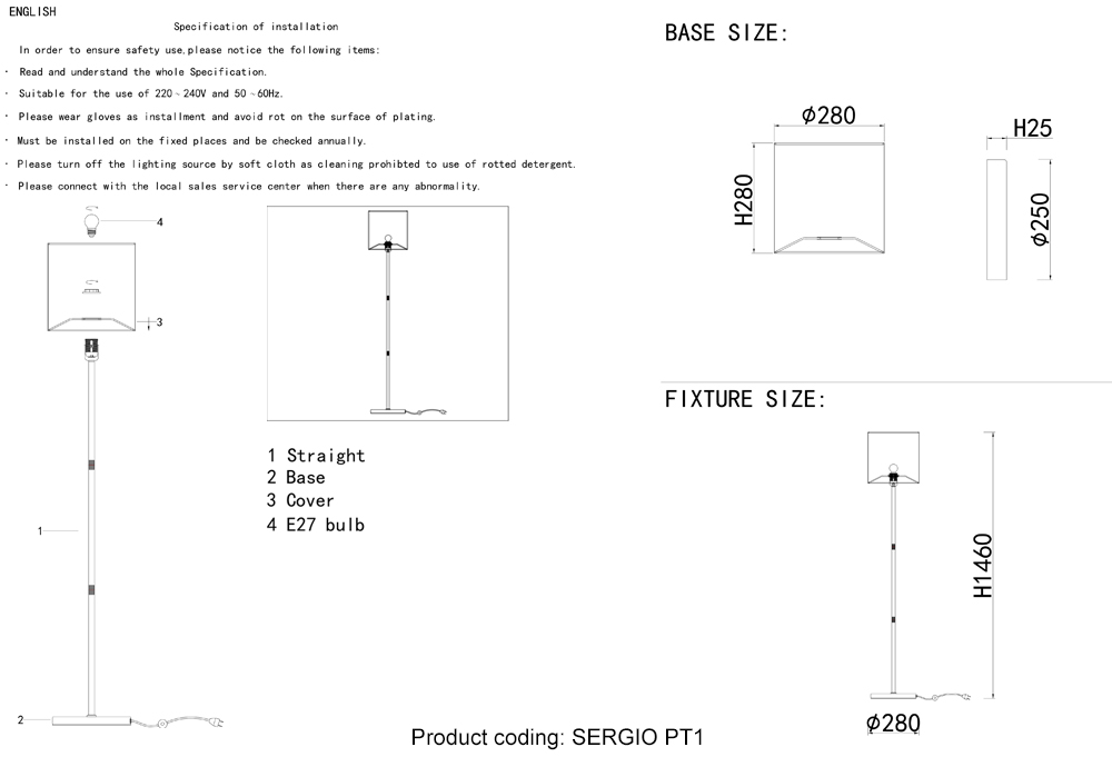 Торшер Crystal Lux SERGIO PT1 GOLD