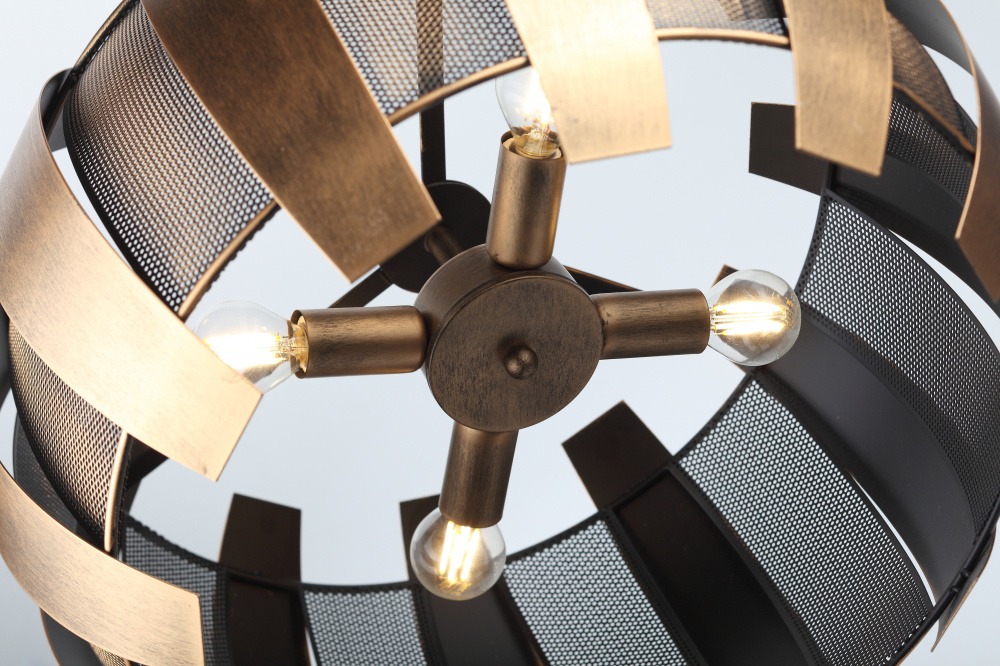 “Diverto" - в переводе с итальянского “веселье". Эта серия, действительно, похожа на шутку, она только с виду кажется серьезной. Но присмотритесь - теплый цвет античной бронзы, округлые формы и мягкий свет, струящийся сквозь металлическую сетку как маленькие искорки или веснушки озорного ребёнка. В коллекции представлен подвесной светильник на 4 лампы.