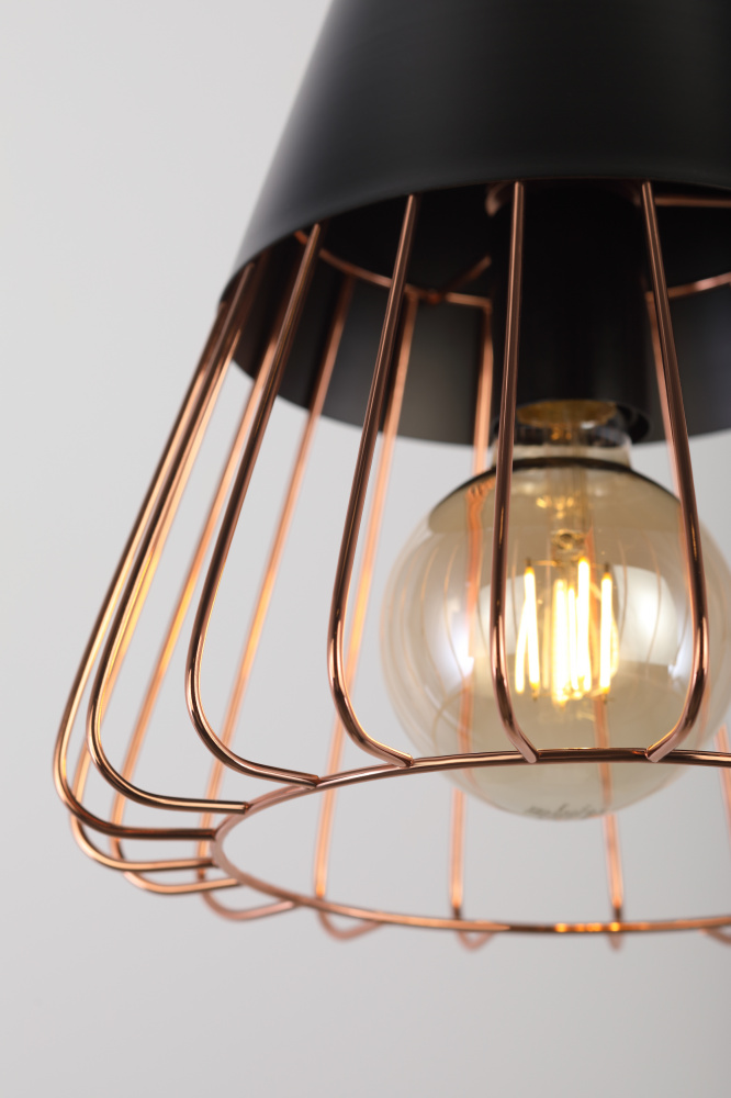 Подвес с подчёркнутой геометричностью арматуры. Миниатюрный, конкретный и уверенный в себе. Имеет стойкое гальваническое покрытие благородного золотого оттенка. Идеален для стилей лофт, минимализм, ретро, сканди. Коллекция представлена подвесом на 1 лампу.
