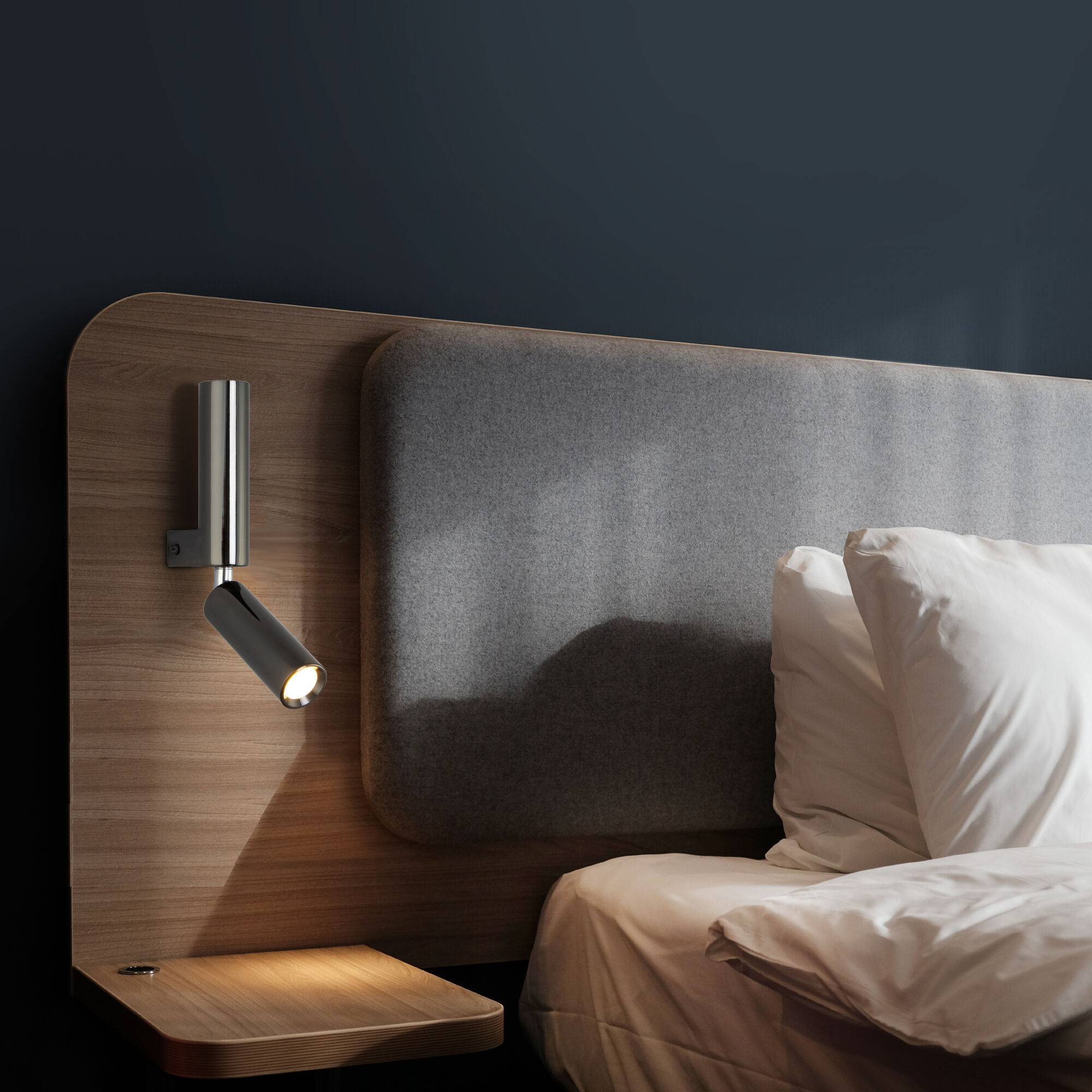 Серия настенных светильников Pitch предназначена для создания дополнительного и функционального освещения. Светодиодная подсветка имеет несколько источников света – первый в верхней части светильника, второй внизу поворотной части арматуры, что дает возможность регулировки направления светового потока в нужном направлении. Настенный светильник легко впишется в современный интерьер и поможет добавить световые акценты в вашей спальне или гостиной.