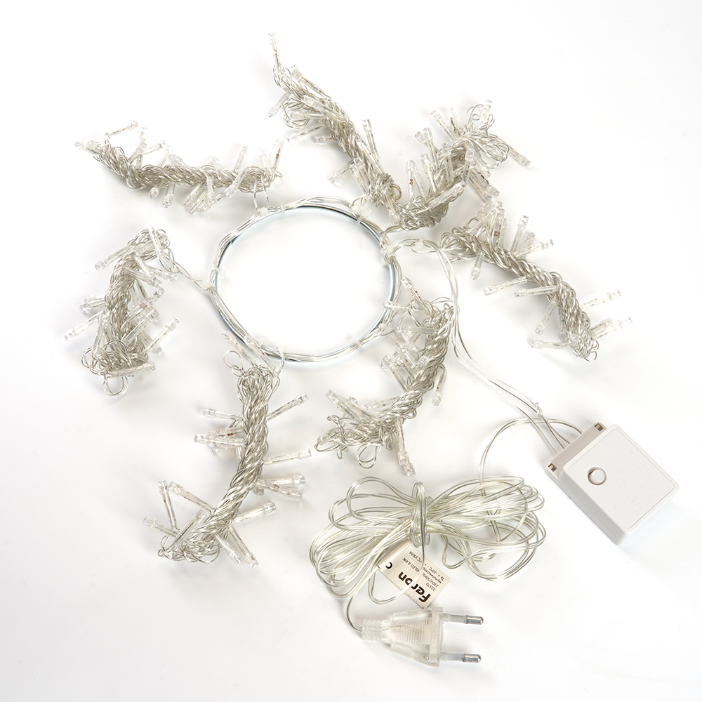 Гирлянда на елку FERON CL90, 140LED, 5000К (белый), настраивается контроллером, 2м+1,5м прозрачный шнур, расстояние между светодиодами 10см, IP20, 8,4W, от сети 230V, последовательное подключение - НЕТ