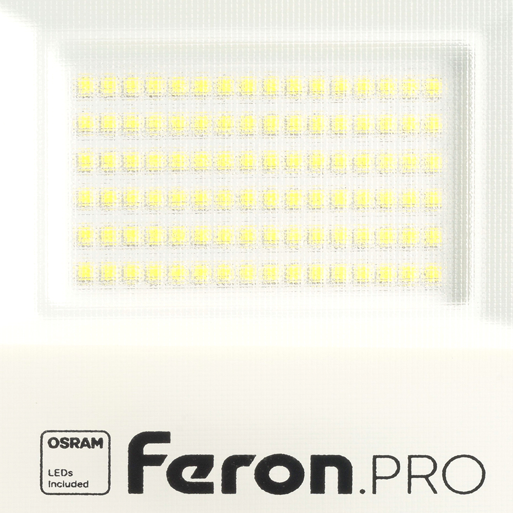 Прожектор светодиодный многоматричный с монтажным креплением на кронштейн, (ДО) FERON LL-1000, 50W, 6400К (холодный белый), 175-265V/50Гц, 6000Lm, IP65, угол рассеивания 120°,*OSRAM, раб.t -40°C - +70°C, цвет чёрный, корпус алюминий литой под давлением + стекло, 169*183.5*34 мм