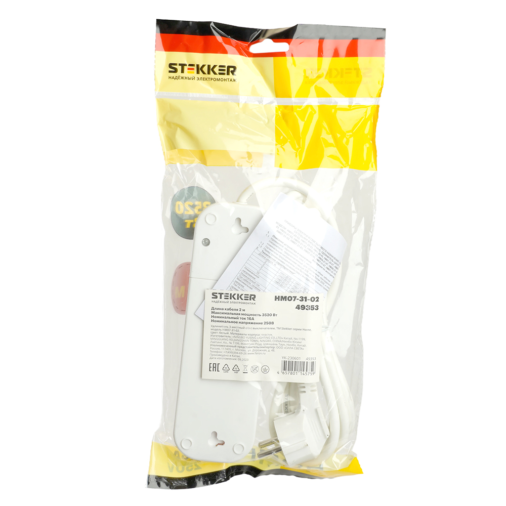 Удлинители STEKKER 49354, серия Home, цвет белый, длина 3 м, количество розеток 3, сталь, сечение кабеля 1 мм2, тип кабеля ПВС, материал кабеля -, ток 16А, напряжение 250В, максимальная нагрузка 3520Вт, тип вилки - прямая. Диапазон рабочих температур +1..+35°C, степень защиты IP20, класс защиты от поражения эл. током 1, размеры изделия -*-*-. Гарантия 1 год.
