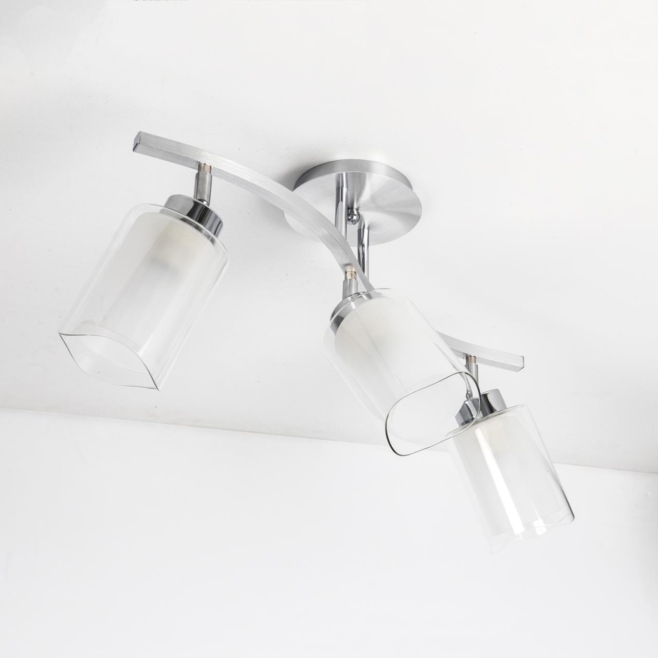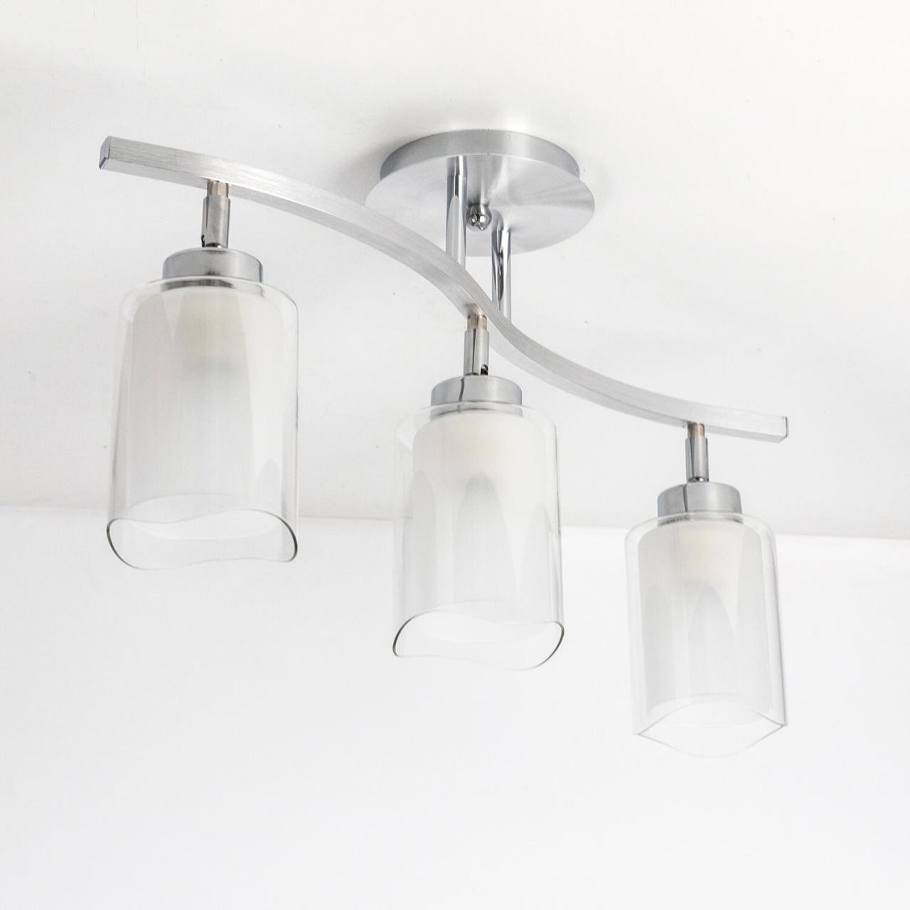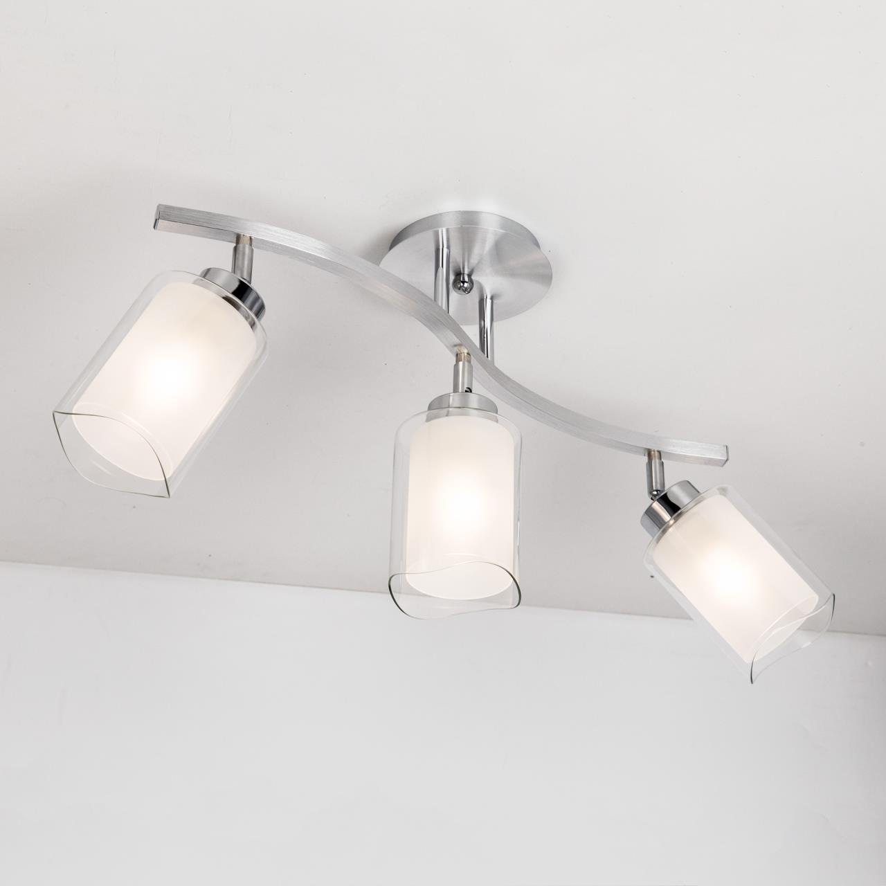 У светильников коллекции «Аэлита» есть шарниры, с помощью которых возможно направлять плафоны в разные стороны. С помощью поворотных плафонов можно как распределить свет в комнате равномерно, так и видоизменить дизайн светильников так, как вам это больше всего понравится. Серия отлично подойдет для таких мест как гостиная, кабинет, прихожая, спальня. Плафоны выполнены из стекла. Основание светильника - высококачественный металл. Плафон состоит из двух частей: прозрачной внешней и полупрозрачной внутренней. Прозрачная часть плафона очень облегчает внешний вид всей конструкции, за счёт неё светильники смотрятся очень изящно. Полупрозрачная внутренняя часть плафона даёт возможность добиться максимальной яркости, но вместе с тем свет мягкий, рассеянный. Цвет основания выполнен в цвете алюминий и хром, который отлично подойдет для любых решений интерьера. В конструкции используются качественные термостойкие патроны, позволяющие применять лампы накаливания до 75 ватт включительно, соответственно энергосберегающие или светодиодные лампы можно применять любые, без ограничения по мощности.   Светильник имеет защиту от влаги и пыли — IP20 и предназначен для использования в домашних интерьерах со средней влажностью. Трёх рожковая модель универсальна тем, что её можно смонтировать, как по длинной стороне комнаты, так и поперёк помещения. Иногда идеальное решение – монтаж по диагонали, из угла в угол. Площадь освещения данной модели до 11 квадратных метров.