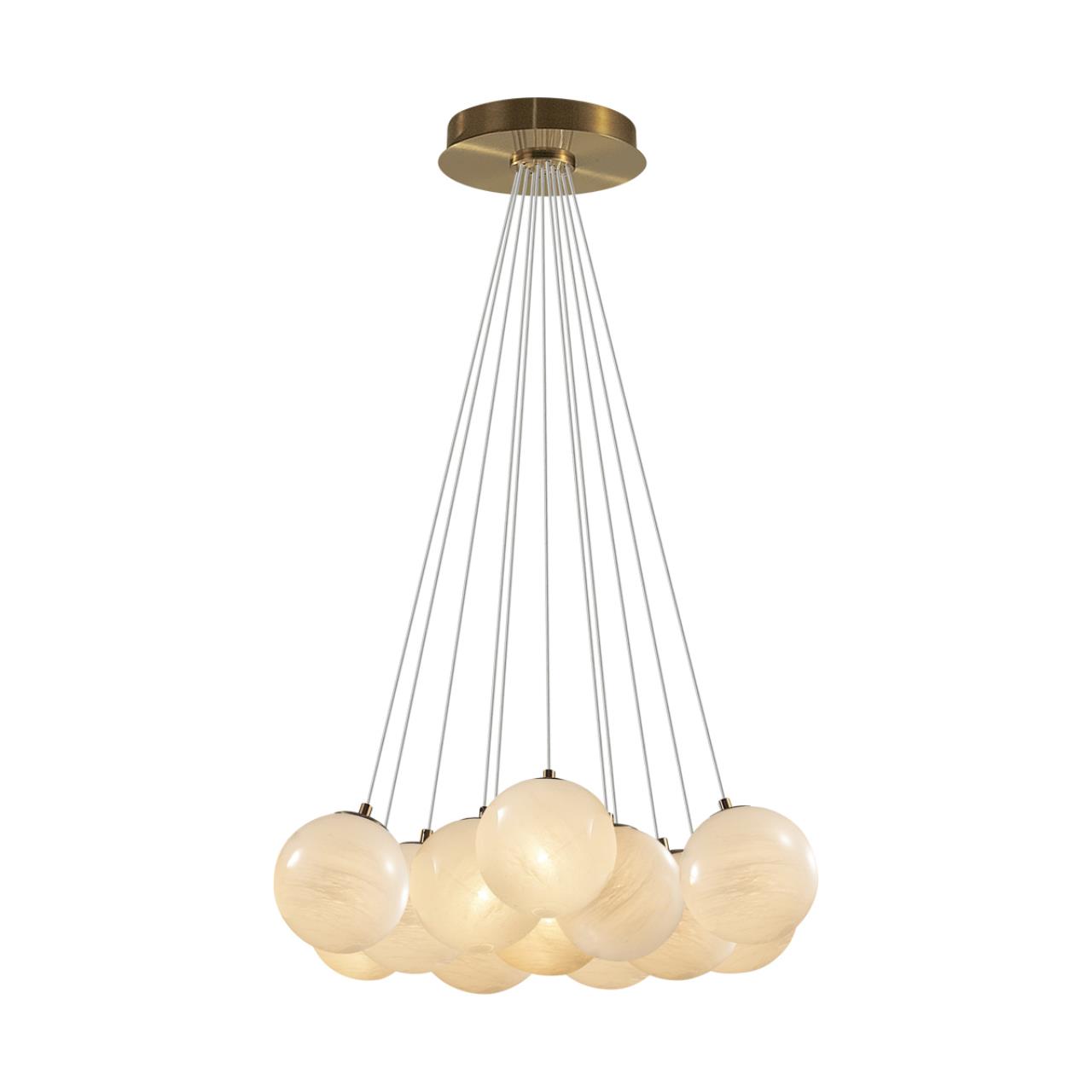 Образ шаров в линии Magia создает воздушную атмосферу. Белое глянцевое молочное стекло выполнено с эффектом облачного узора. Высота регулируется от 600 до 2000 мм. При желании можно использовать декоративное кольцо для сборки проводов. Рекомендуетсяовано использование филаментных ламп с цоколем E14.