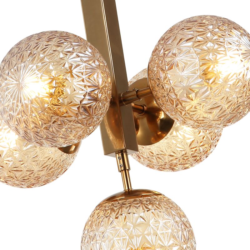 Светильник подвесной из коллекции Felis / Фелис выполнен из металла, гальванизированного в цвет бронзы, и декорирован плафонами из фактурного стекла янтарного цвета. Премиальное качество и неповторимыи? дизаи?н светильников идеально подои?дут в современные дизайнерские интерьеры.