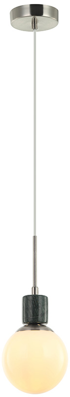 Светильник подвесной из коллекции Sharo / Шаро выполнен из металла, гальванизированного в цвет никеля, и декорирован натуральным мрамором. Источник света закрыт белым глянцевым плафоном. Провод на подвесе выполнен из перекрученного прозрачного шнура в винтажном стиле. Премиальное качество и неповторимыи? дизаи?н светильников идеально подои?дут как в классические, так и современные дизайнерские интерьеры.