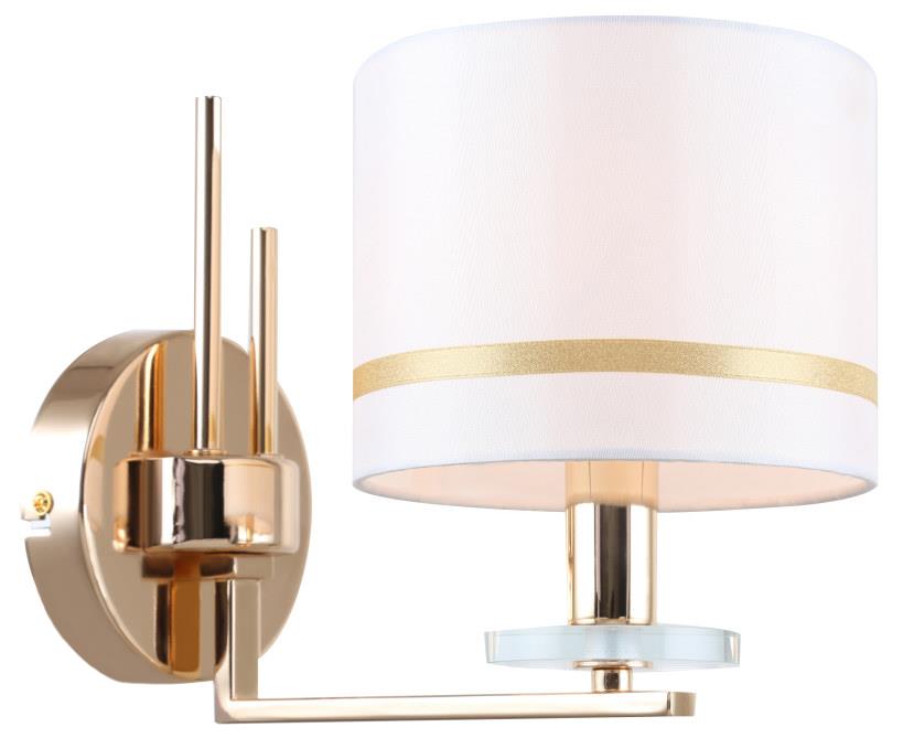 Светильник настенный из коллекции Chart / Чарт выполнен из металла, гальванизированного в цвет золота, и декорирован железными стержнями в цвет арматуры. Текстильный абажур белого цвета с термостойким акрилом внутри отделан кантом в цвет арматуры. Декоративная розетка выполнена из прозрачного стекла.