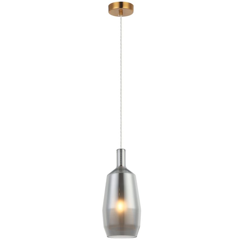 Светильник подвесной из коллекции Еladin выполнен из металла, гальванизированного в цвет бронзы, и декорирован двойным плафоном, где внутренний плафон выполнен из белого матового стекла, а внешний - из стекла дымчатого цвета. Провод на подвесе выполнен из перекрученного прозрачного шнура в винтажном стиле. Современная форма светильников и высокое качество идеально подойдут как в классические, так и современные интерьеры.