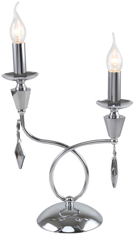 Светильник настольный из коллекции Grace / Грейс выполнен из металла, гальванизированного в цвет тонированного хрома, и декорирована массивами хрусталя и хрустальными подвесками в форме ромба цвета тонированного хрома. Премиальное качество и неповторимыи? дизаи?н светильников идеально подои?дут как в классические, так и в современные интерьеры.