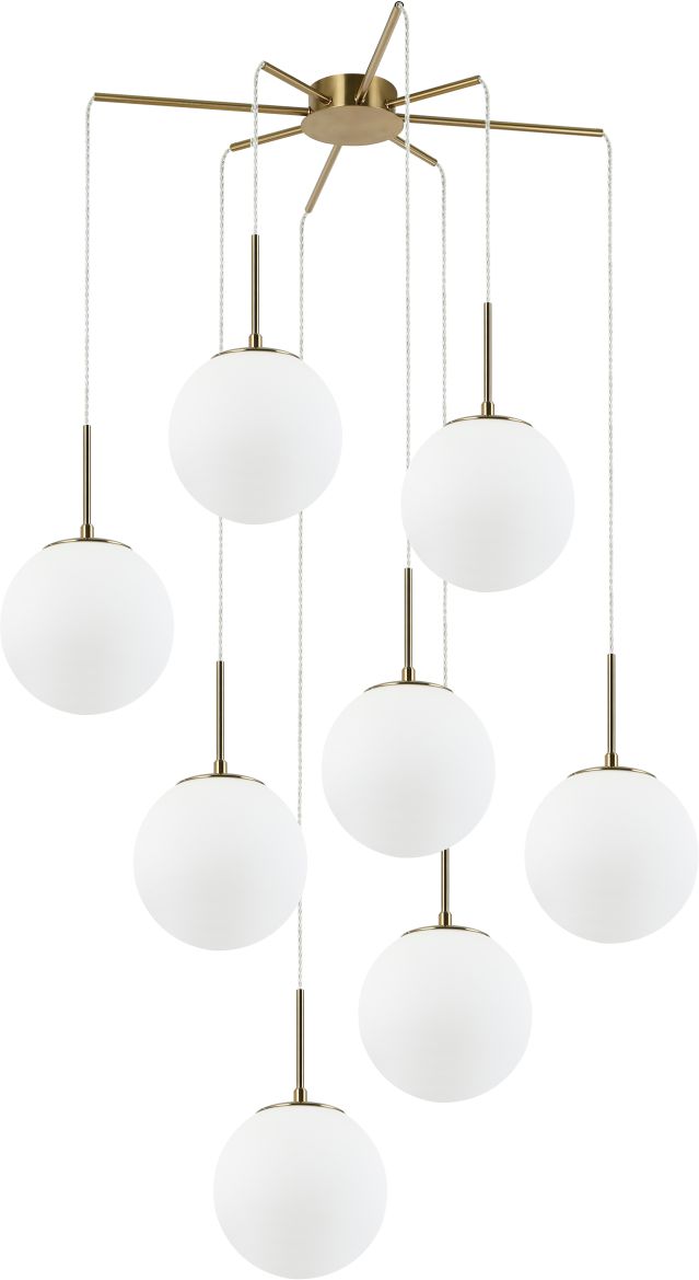 Люстра подвесная коллекции Antell / Антелл выполнена из металла, гальванизированного в цвет бронза, и белых матовых стеклянных плафонов, которые крепятся на винтовую резьбу. Преимуществом подвеса стало использование патронов с цоколем Е27. Благодаря матовым плафонам подвес создает приятное мягкое освещение. Светильник данной коллекции имеет возможность регулировки высоты для помещений как с низким, так и с высоким потолком. *Рекомендуется установка белой матовой лампочки. ? Диаметр ?45мм. Из данной коллекции светильников можно сделать индивидуальный заказ любого цвета и размера.